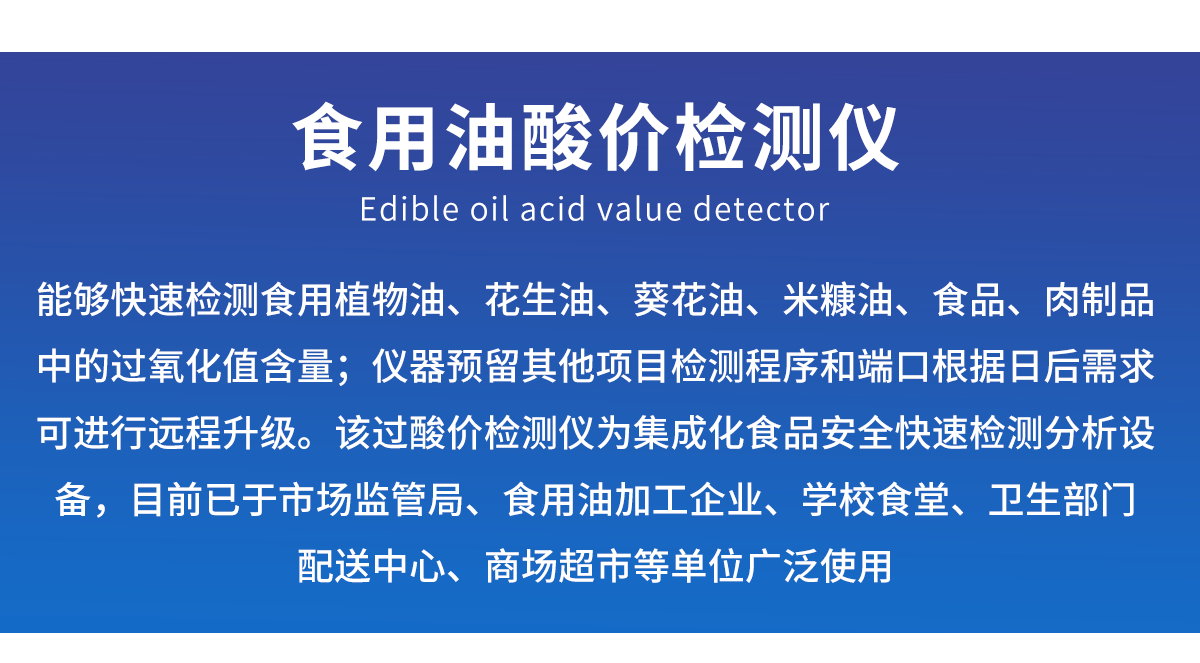 廣泛應(yīng)用于質(zhì)量監(jiān)督檢驗、工商管理、油炸食品生產(chǎn)基地、食藥監(jiān)局、衛(wèi)生部門、肉制品食品深加工企業(yè)、商場超市、各大食品安全監(jiān)測系統(tǒng)等單位使用。