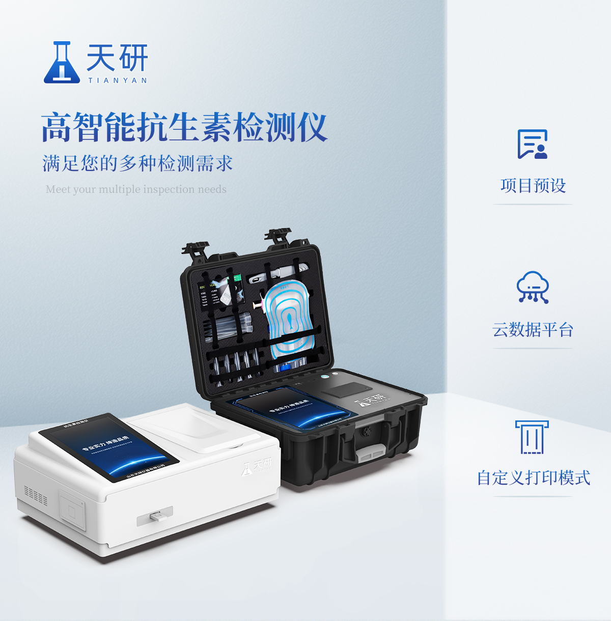 產品介紹: 山東天研儀器有限公司生產的箱式抗生素檢測儀為集成化食品安全快速檢測分析設備,采用臺式一體化設計,可快速檢測200多種食品安全項目,包含非食用化學物質、濫用食品添加劑、農藥殘留、獸藥殘留、重金屬、病害肉、營養強化劑、抗生素類殘留、激素類殘留、真菌毒素類殘留、化學類殘留等項目的定性