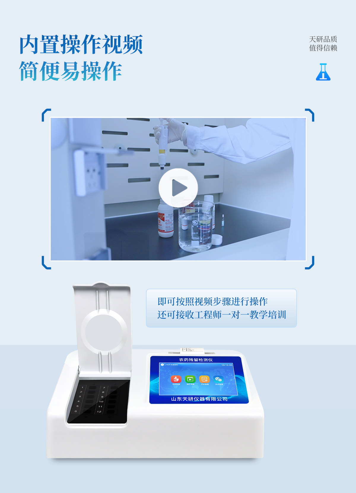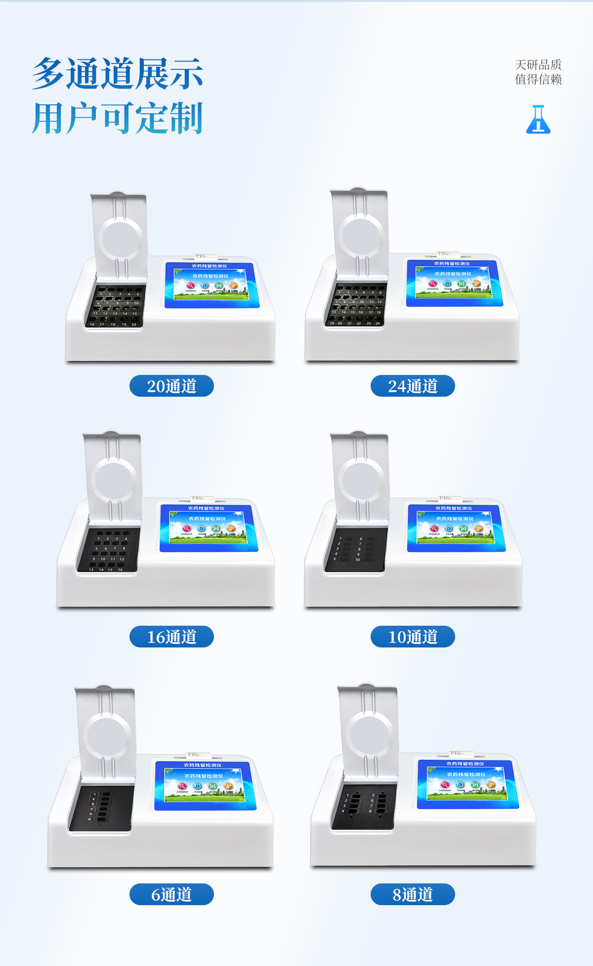 檢測標(biāo)準(zhǔn):依據(jù)國家標(biāo)準(zhǔn)方法(GB/T5009.199-2003)以及世界衛(wèi)生組織WHO、世界糧農(nóng)組織FAO殘留農(nóng)藥檢測標(biāo)準(zhǔn)、世界環(huán)境保護(hù)局EPA參照攝入量等要求來設(shè)計(jì)。采用酶抑制率比色法對水果、蔬菜等農(nóng)林產(chǎn)品中有機(jī)磷和氨基甲酸酯類農(nóng)藥含量進(jìn)行快速準(zhǔn)確的檢測,乙酰膽堿酯酶和丁酰膽堿酯酶試劑均可以使用,符合國家標(biāo)準(zhǔn)和農(nóng)業(yè)部標(biāo)準(zhǔn)的要求。