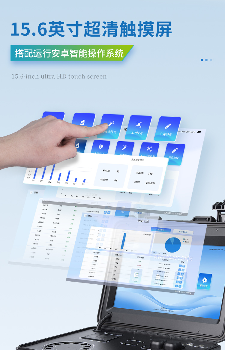 | 儀器采用臺式一體化系統(tǒng)檢測技術,將分光光度模塊、新型農殘檢測模塊、數字化管理模塊、無線通訊模塊高度集成于一體,支持檢測200種食品安全檢測項目,同時預留升級檢測方法。 | 儀器檢測模塊標準化、智能化,可隨意自由組合。檢測箱體內置多個標準檢測單元,檢測模塊可以調整配置。 | 儀器采用全新安卓智能系統(tǒng),主控芯片采用 ARM Cortex-A7,RK3288/4核處理器,10.1寸高清液晶觸摸豎屏,更加**的UI交互界面,運轉快捷;儀器配備無線通信模塊: 4G(APN)通訊模塊、Wifi模塊,藍牙傳輸,同時具有雙USB接口以及RJ45接口能以多種方式實現數據保存和數據傳輸功能。 | 創(chuàng)新檢測模式: | ★檢測通道:≥12通道;采用精密旋轉比色池設計,使用同芯片同光源校準精度,解決不同光源之間的誤差值。1-12通道間誤差0.1%。(**號:ZL202022821055.2) | ★儀器具有自動識別比色皿檢測功能,即:將樣品比色皿放入儀器后,點擊樣品檢測,儀器自動識別比色皿進行通道檢測。 | 進口高精光源: | 高精度進口四波長冷光源,通道配置 410、520、590、630nm 波長光源,一個光源芯片驅動一個光源,誤差極小,每臺設備單獨**校準光源,**比對,同時參照四種不同波段光源全方位覆蓋市面上99%的農殘食品項目檢測。 | 智能化操作系統(tǒng): | 便捷操作系統(tǒng):設備檢測時可在同一檢測界面自動對應相關檢測通道一次性選擇1-12個樣品名稱,無須退出界面,節(jié)省操作時間。 | 數據集成系統(tǒng):設備首頁自動統(tǒng)計檢測數據包含:周檢測數據、月檢測數據,全部檢測總數量,均包含檢測總數,合格數,不合格數,以及相關柱形分析圖,對各項檢測數據清晰掌握,無需電腦查詢,更加快捷直觀。 | 項目預設系統(tǒng):支持添加單個及多個相同或不相同的任務預設,一鍵快速調取,每一個任務分別可以設置不同的樣品、批次、編號、來源、備注、抽樣信息、檢測信息、受檢信息、復核信息等更多信息。無縫鏈接平臺和APP實時查看下發(fā)任務。 | 數據監(jiān)管系統(tǒng):同步對接監(jiān)管平臺,數據可局域網和互聯(lián)網數據上傳,檢測結果可選擇直接傳至食品安全監(jiān)管平臺。集成OSS輸出存儲服務、區(qū)分設備定向管理應用,進行區(qū)域食品安全監(jiān)管及大數據分析處理與數據統(tǒng)計,檢測區(qū)域食品安全長短期動態(tài),達到食品安全問題預估、預警。 | 自定義打印系統(tǒng):內置全新打印系統(tǒng),新創(chuàng)自定義打印方式,可按需靈活設置開啟或關閉:產品合格證(國家農業(yè)部標準要求),二維碼,抽樣信息、檢測信息,受檢信息、復核信息、抽樣日期、檢測日期等信息的打印。 | 系統(tǒng)遠程更新功能:可定向分客戶分儀器更新系統(tǒng),按照不同客戶后期實際需求添加項目,無需機器返廠,即可遠程實時升級全新系統(tǒng),節(jié)省時間成本及避免運輸造成設備損壞。 | 儀器主機采用一體化防水、抗壓、防撞擊、防腐蝕箱體設計,同時配備交直流供電,可連接車載電源,可選配大容量充電鋰電池,滿足現場野外檢測需求。 | 安全證書,放心保障:儀器具有中國計量科學研究院校準證書,**認證。 |