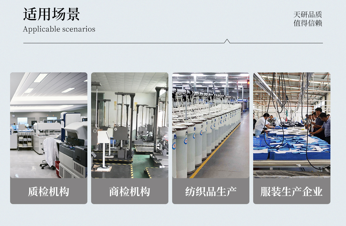 該紡織品甲醛檢測系統與質檢、商檢機構采用同樣執行標準、檢測方法,專業為廣大紡織品、服裝等生產企業、質檢商檢單位提供“一站式服務”,同時為各類紡織品甲醛實驗室提供專業的解決方案。