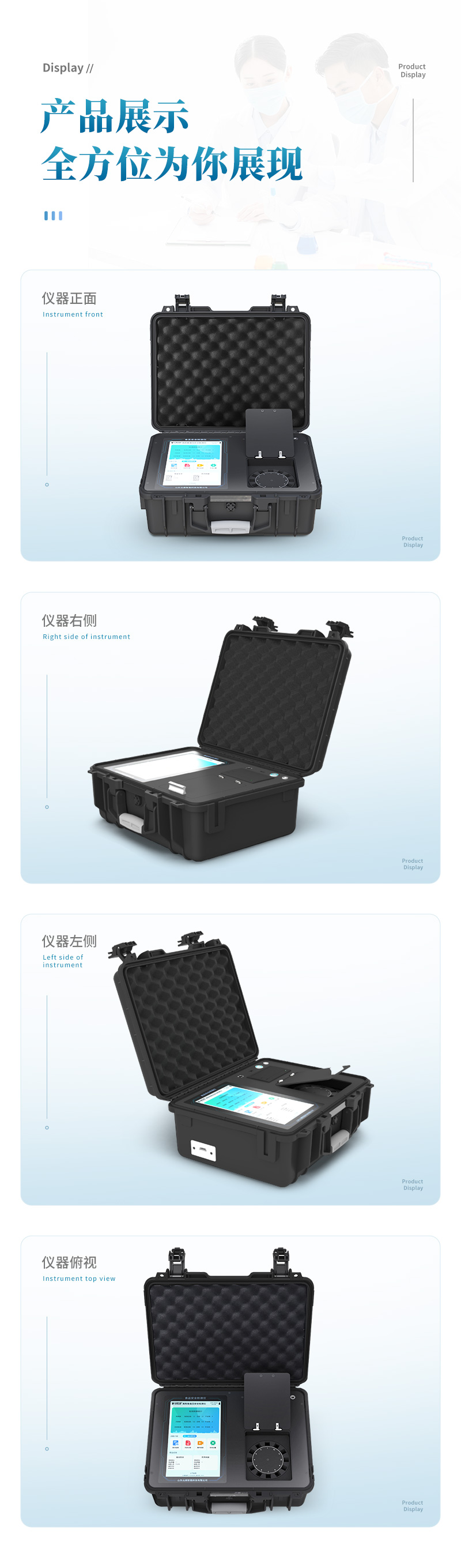 | 儀器采用手提式一體化系統檢測技術,將分光光度模塊、膠體金檢測模塊、新型農殘檢測模塊、數字化管理模塊、無線通訊模塊高度集成于一體,支持檢測200種食品安全檢測項目,同時預留升級檢測方法。 | 儀器檢測模塊標準化、智能化,檢測項目可隨意自由組合。檢測箱體內置多個標準檢測單元,檢測模塊可以調整配置。 | 顯示屏幕:儀器采用10.1英寸豎向液晶觸摸屏顯,搭配運行安卓智能操作系統,主控芯片采用ARM Cortex-A7,RK3288/4核處理器,主頻1.88Ghz,操作方便,性能更強。 | 檢測通道:≥12通道;采用精密旋轉比色池設計,使用同芯片同光源校準精度,解決不同光源之間的誤差值,更加準確**。(1-12通道間誤差0.1%,**號:ZL202022821055.2) | 儀器光源:高精度進口四波長冷光源,每個通道均配置 410、520、590、630nm 波長光源,標配**的光路切換裝置,**光路切換功能可實現64波長,并且所有檢測項目可實現所有通道同時檢測。 | 設備可一鍵校準,自動保存校準數據,自動對比校驗,得到精準光源,采用Android SP存儲數據,光源數據永不丟失,方便每一次使用。 | 通訊接口:配備無線通信模塊、4G(APN)通訊模塊、藍牙傳輸,同時具有雙USB接口以及RJ45網線接口,可以多方式實現數據保存及數據傳輸 | 存儲方式:支持U盤存儲,標準USB接口,免驅動安裝。檢測結果存儲容量20萬條以上,可生成Excel表格進行拷貝,并具有登錄保護功能。 | 智能化操作系統: | 1)操作系統:儀器可在同一檢測界面自動對應相關檢測通道,一次性選擇1-12個樣品名稱,無需退出界面,節省操作時間。并可以對每個通道屬性和樣品信息單獨進行編輯,例如送檢單位、人員,檢測人員等,打印時勾選打印顯示。 | 2)數據集成系統:設備首頁自動匯總分析檢測數據,包含:周檢測數據、月檢測數據,全部檢測總數量,均包含檢測總數,合格數,不合格數,以及相關柱形分析圖,各項檢測數據一目了然,無需電腦查詢,更加快捷直觀。 | 3)數據庫系統:十幾項數據庫分類管理儀器:包含項目類型、項目數據、檢測數據、歷史記錄、國標信息、曲線信息、采樣信息、檢測信息、受檢信息、復核信息、圖表信息、光源校準信息、打印樣式信息、樣品庫信息等等,數據庫之間互相協調聯動保證數據的真實完整性。同時產品數據庫以及歷史檢測記錄支持一鍵檢索功能。 | 4)限量規判系統:具有限量查詢、添加物質合規判定系統。檢測出結果后,系統自動調用系統數據庫中相關國標進行比對判定,客觀顯示判定結果是否合格。 | 5)項目預設系統:儀器具有任務預設模塊,一鍵提前預設,給出方便快捷的新檢測方案,每一個任務分別可以設置不同的樣品、批次、編號、來源、備注、抽樣信息、檢測信息、受檢信息、復核信息等更多信息。樣品送檢時一鍵調取保存信息,并可多次調取,大大提高檢測效率。 | 6)數據監管系統:同步對接監管平臺,數據可局域網和互聯網數據上傳,檢測結果可選擇直接傳至食品安全監管平臺。進行區域食品安全監管及大數據分析處理與數據統計,檢測區域食品安全長短期動態,達到食品安全問題預估、預警。 | 7)打印系統:內置全新打印機,新創自定義打印方式,可按需靈活勾選控制:產品合格證(國家農業部標準要求),二維碼,抽樣信息、檢測信息,受檢信息、復核信息、抽樣日期、檢測日期等信息的打印。 | 供電模式:儀器交直流兩用,直流12V供電,可連接車載電源,可配6ah大容量充電鋰電池,電量可實時顯示,方便戶外流動測試。 | 膠體金檢測模塊:采用雙通道CMOS成像處理技術及膠體金免疫層析技術,可同時讀取雙膠體金卡數據,自動采集、處理分析,將檢測結果顯示,并可根據參考限值自動判斷檢測結果,可檢測常見的獸藥殘留、生物毒素、抗生素、違禁添加物等。 | 1)探測技術:CMOS成像探測; | 2)檢測通道:1個通道; | 3)檢測方式:消線法和比色法; | 4)顯示模式:陰性或陽性; | 5)曲線形式:軌道式掃描方式,顯示金標卡圖像,實時生成、識別CT曲線圖,無需手動調整,完成檢測后自動退出檢測卡。兼容市場上其他金標卡,使用耗材不受限制。 | 儀器加入遠程升級功能,可定向分客戶分儀器更新,開機后自動更新,客戶無需任何操作,即可升級全新項目。做到了無需退換機器即可實現實時遠程升級檢測儀器。 |