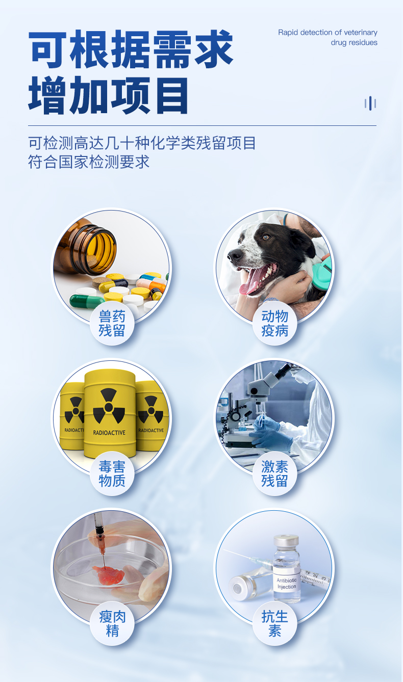 產品用途: 山東云唐智能科技有限公司生產的水產品安全檢測儀可適用于魚、蝦等水產中孔雀石綠、氯霉素、硝基呋喃類:呋喃唑酮(AOZ)、呋喃它酮( AMOZ )、呋喃妥因(AHD)、呋喃西林(SEM)、呋喃那斯、磺胺類、激素類、四環素類、金霉素、土霉素、甲砜霉素、氟苯尼考、喹諾酮類藥物:噁喹酸、諾氟沙星、恩諾沙星、