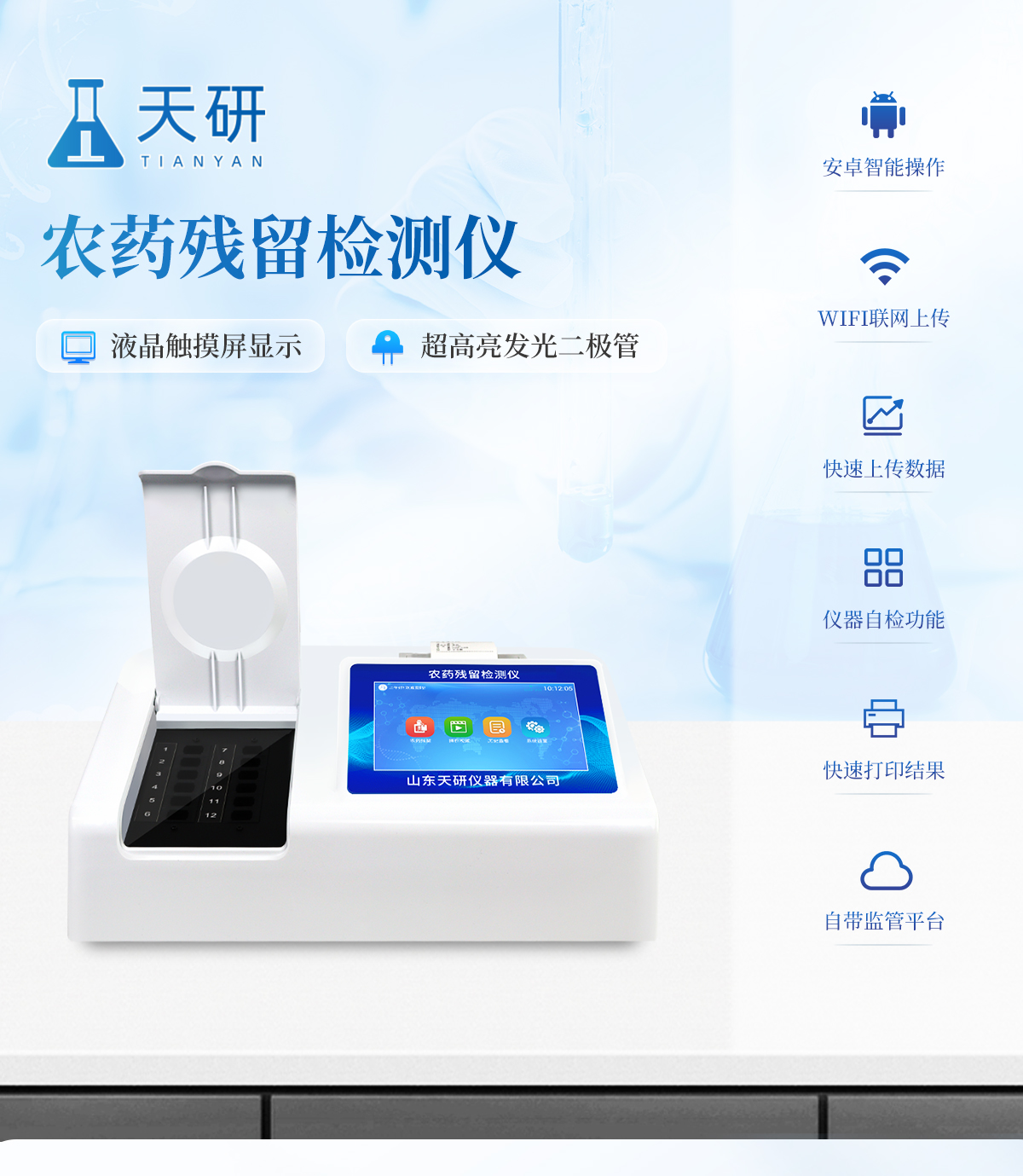 廣泛應用于主要用于蔬菜、水果、茶葉、糧食、農副產品等食品中有機磷和氨基甲酸酯類農藥殘留的快速檢測;此外還可用于果蔬茶生產基地和農貿批發銷售市場現場檢測,餐館、學校、食堂、家庭果蔬加工前的安全速測等。