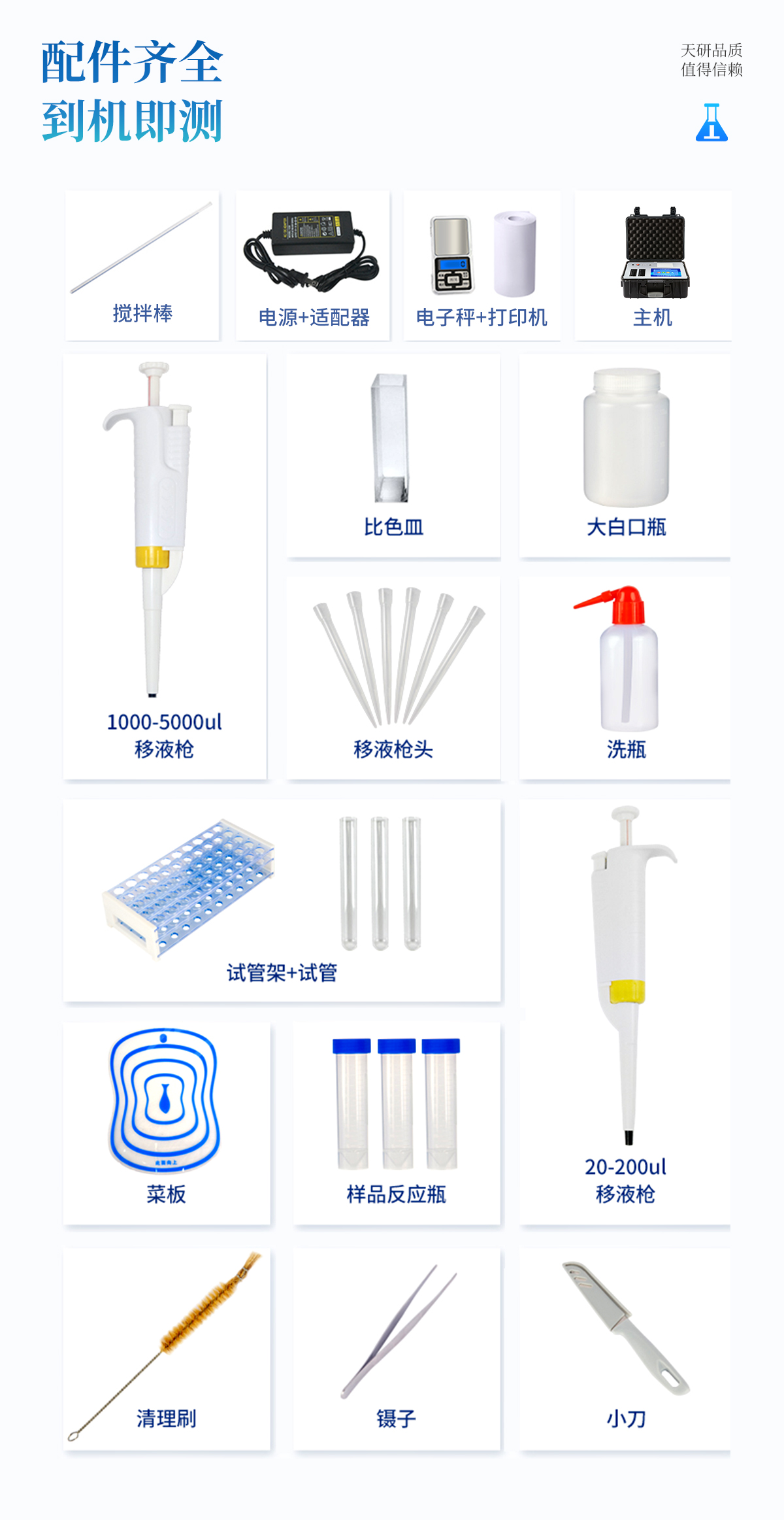 | 主控芯片采用32位處理器,運轉速度更快,穩定性強。 | 直流12V供電,可連接車載電源。 | 光源亮度自動調節與校準 | 脈沖式恒流驅動,避免連續發光引起光衰和溫漂。 | 可設置密碼登錄 | 不間斷進樣,連續檢測 | 樣本編號自動累加。 | 檢測項目可擴充。 | 檢測結果可批量打印,批量上傳。 | 檢測結果為Excel表格,連接電腦即可拷貝。 | 檢測結果存儲容量20萬條 | 固件可升級 |
