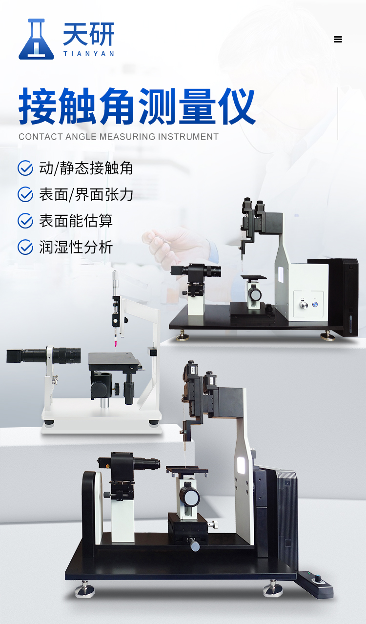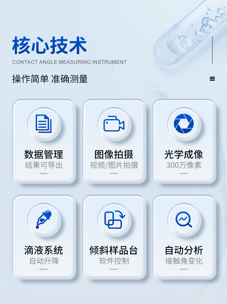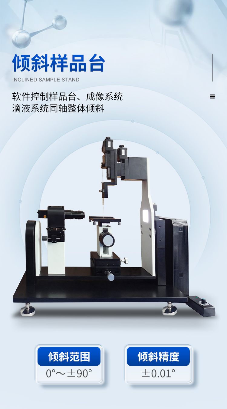 本機除了利用停滴法測試靜態(tài)接觸角外,更側(cè)重于利用傾斜板法測試和分析動態(tài)接觸角(包括前進(jìn)接觸角、后退接觸角和滾動角);同時也可以測試液體表面張力、估算固體表面能和分析潤濕性。廣泛應(yīng)用于生物化工、納米技術(shù)、涂層工藝、耐水材料、科教軍工等尖端領(lǐng)域的測試與研究。
