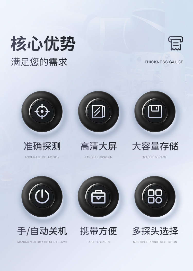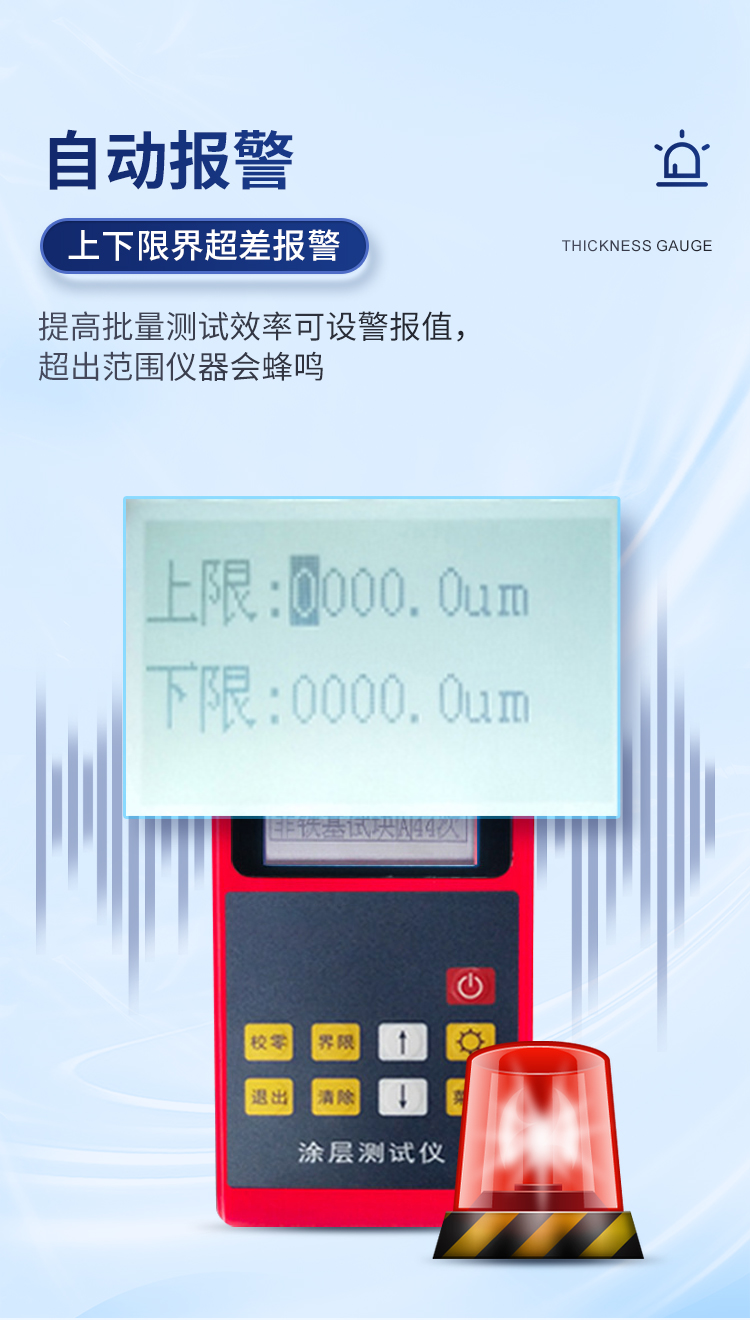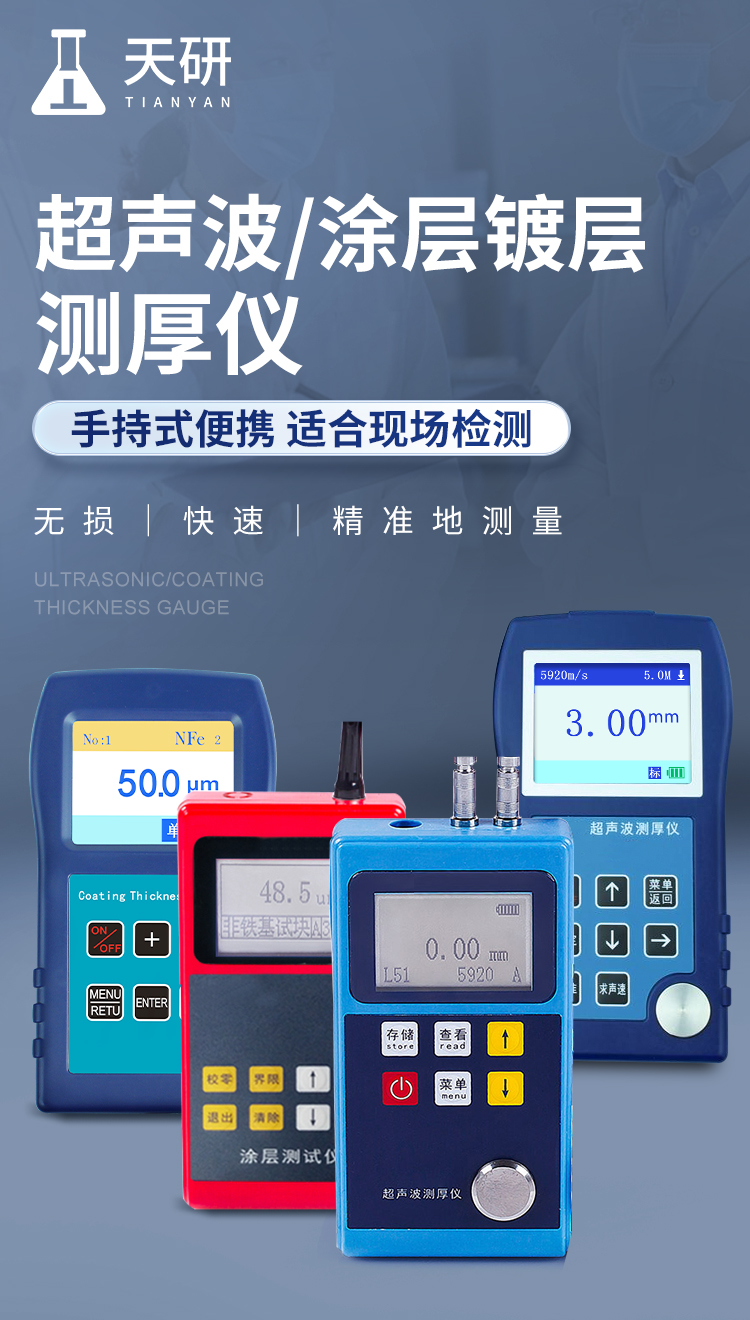產品簡介: 天研涂層測厚儀采用磁性和電渦流兩種測量方法,可檢測磁性金屬基體上非磁性覆蓋層的厚度(如鋼鐵合金和硬磁性鋼上的鋁、鉻、銅、鋅、錫、橡膠、油漆等),以及非磁性金屬基體上非導電的絕緣覆蓋層的厚度(如鋁、銅、鋅、錫上的橡膠、塑料、油漆、氧化膜等)。 涂層測厚儀應用在電鍍、防腐、