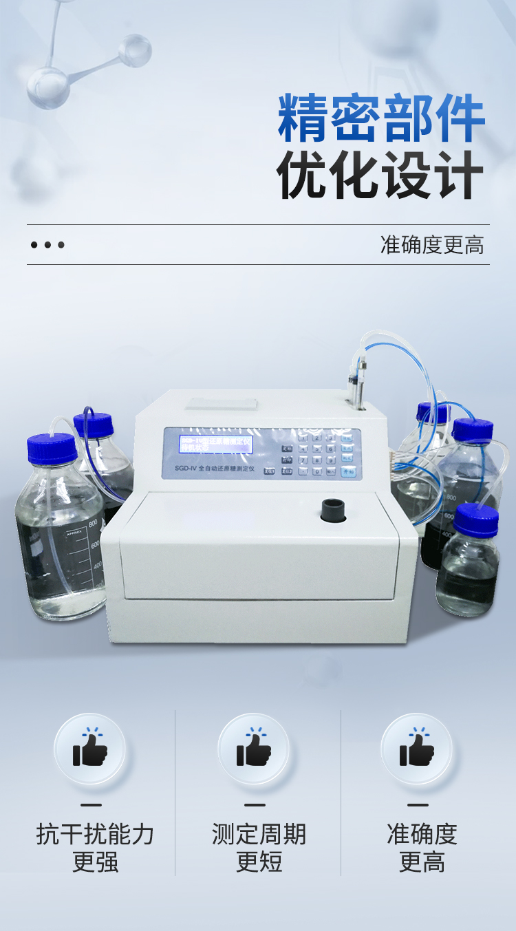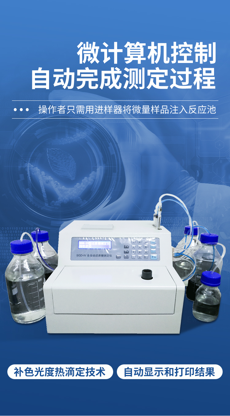 全自動還原糖測定儀是根據費林試劑測定原理設計而成的,其原理與目前國家標準一致。IV型全自動還原糖測定儀實現試劑泵、滴定泵自動排氣泡,操控更方便;采用精密部件優化設計,準確度更高;測定時間縮短至3分鐘以內,測定速度更快;液晶屏顯示更直觀。