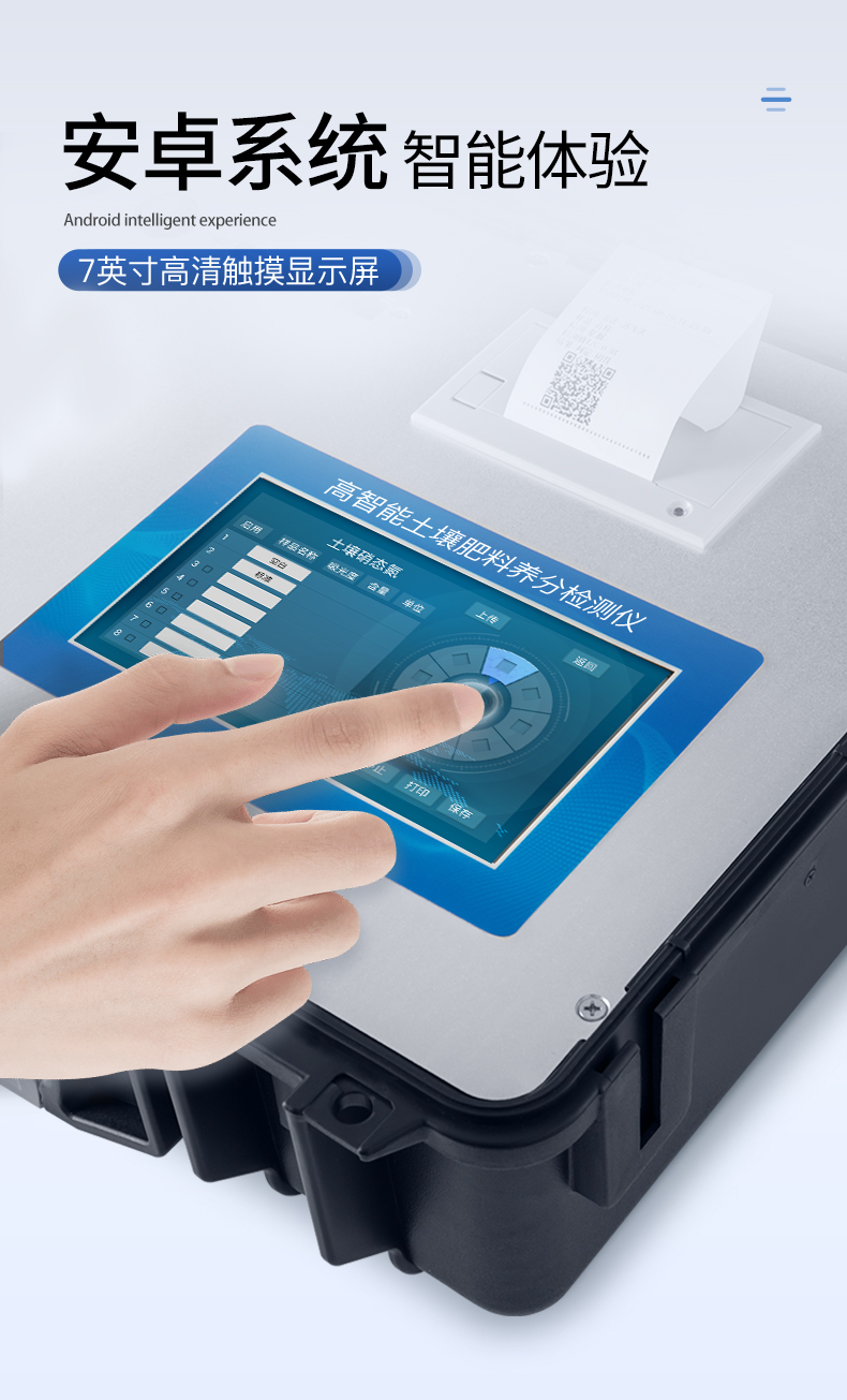 | ★1、Android安卓智能操作系統(tǒng),主控芯片采用ARM Cortex-A7,RK3288/4核處理器,主頻1.88Ghz,運轉(zhuǎn)速度更快速,穩(wěn)定性更強。 | ★2、12個檢測通道,一次性可快速檢測12個樣品,極大提升檢測效率,降低檢測成本。 | ★3、采用高精度濾光片技術(shù)自主**分析方法(**號:ZL 2020 2 1763837.9),**認證。 | ★4、檢測過程中內(nèi)置校準功能,智能恒流穩(wěn)壓,光強自動校準,確保檢測準確度,取得中國計量科學(xué)研究院的《校準證書》。 | ★5、儀器標配wifi無線上傳、4G聯(lián)網(wǎng)傳輸、GPRS無線遠傳,快速上傳數(shù)據(jù)。 | ★6、配有智慧云農(nóng)業(yè)平臺,儀器連入無線網(wǎng)絡(luò)后,可將檢測數(shù)據(jù)可選擇性或批量無線上傳,方便用戶進行長期數(shù)據(jù)管理和可視化分析。 | 7、儀器配同時具有USB接口、以太網(wǎng)接口,內(nèi)置大容量內(nèi)存,并可隨時用U盤拷貝數(shù)據(jù)。 | ★8、可用手機隨時登錄云平臺在線移動查看歷史數(shù)據(jù) | ★9、內(nèi)置作物專家施肥系統(tǒng),可對百余種全國農(nóng)業(yè)經(jīng)濟作物、果樹等的目標產(chǎn)量計算推薦施肥量,依據(jù)施肥配方科學(xué)指導(dǎo)農(nóng)業(yè)生產(chǎn)。測土配方施肥結(jié)果可打印,打印內(nèi)容包含:作物種類、肥料種類、目標產(chǎn)量、需求總量、建議施肥方案。 | 10、內(nèi)置植物營養(yǎng)診斷標準圖譜,根據(jù)各農(nóng)作物營養(yǎng)缺失的圖片,進行葉面對比,診斷豐缺。 | ★11、4波長專業(yè)測試冷光源(紅、藍、綠、橙),光源波長穩(wěn)定,長時間連續(xù)工作光源無溫漂現(xiàn)象,壽命長達10萬小時級別,重現(xiàn)性好,準確度高。 | 12、比色池部分采用標準1cm比色皿,無機械位移及磨損,光路測試定位**,有效屏蔽外光干擾,保證檢測結(jié)果優(yōu)于國標要求。 | ★13、儀器系統(tǒng)內(nèi)帶有樣品前處理操作視頻,各種樣品檢測方法點擊視頻模塊即可觀看,檢測人員無需自學(xué)說明書,指導(dǎo)教學(xué)方便快速,方便新手快速操作。 | 14、內(nèi)置新一代高速熱敏打印機(無需色帶),打印內(nèi)容包含:檢測單位、檢測人員、檢測項目、通道號、吸光度、養(yǎng)分含量(mg/kg)、檢測時間、以及二維碼等信息 | ★15、高靈敏7寸真彩觸摸屏,采用更加**和人性化操作,高清晰高交互顯示,大程度降低傳統(tǒng)儀器的繁瑣操作和失誤,并取得多項《軟件著作權(quán)》。 | 16、內(nèi)置時鐘功能,方便操作時間記錄,長期歷史追溯。 | 17、可設(shè)置多賬戶賬號密碼登錄,**UI交互界面,不同的用戶可自由添加編輯檢測信息,保存后可長期使用。 | 18、GPS功能:可在野外作業(yè)時記錄經(jīng)緯度地點,滿足特殊用戶需求。 | 19、內(nèi)置低電壓提示功能,可在檢測時明確電量,避免測試數(shù)據(jù)偏移,同時具有斷電保護功能,斷電自動保存數(shù)據(jù),防止數(shù)據(jù)丟失。 | 20、交直流兩用供電方式,內(nèi)置大容量充電鋰電池,滿電狀態(tài)下可連續(xù)工作10余小時,同時可外接車載電源蓄電。 | ★21、儀器具有中英文切換功能,可滿足出口要求。 | 22、高強度PVC工程塑料手提箱設(shè)計,堅固耐用,便于攜帶。 |