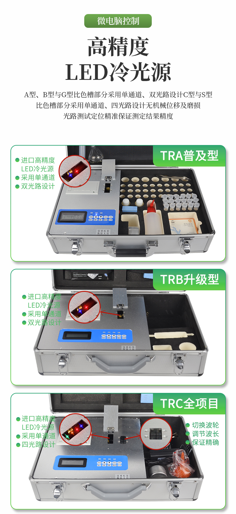 | 肥料養分專用快速檢測儀配套齊全:該儀器集藥、器、儀為一體,攜帶方便,相當于一個小型實驗室。適于農業服務部門或農資經銷商、肥料廠商測土施肥和鑒別肥料真假。 | 操作簡便、速度快捷,成品藥劑開瓶即用,無須配置。 | 性能可靠:工作穩定性優于國家標準JJG179-90指標的6倍,重復性達到光柵型分光光度計指標水平。 |