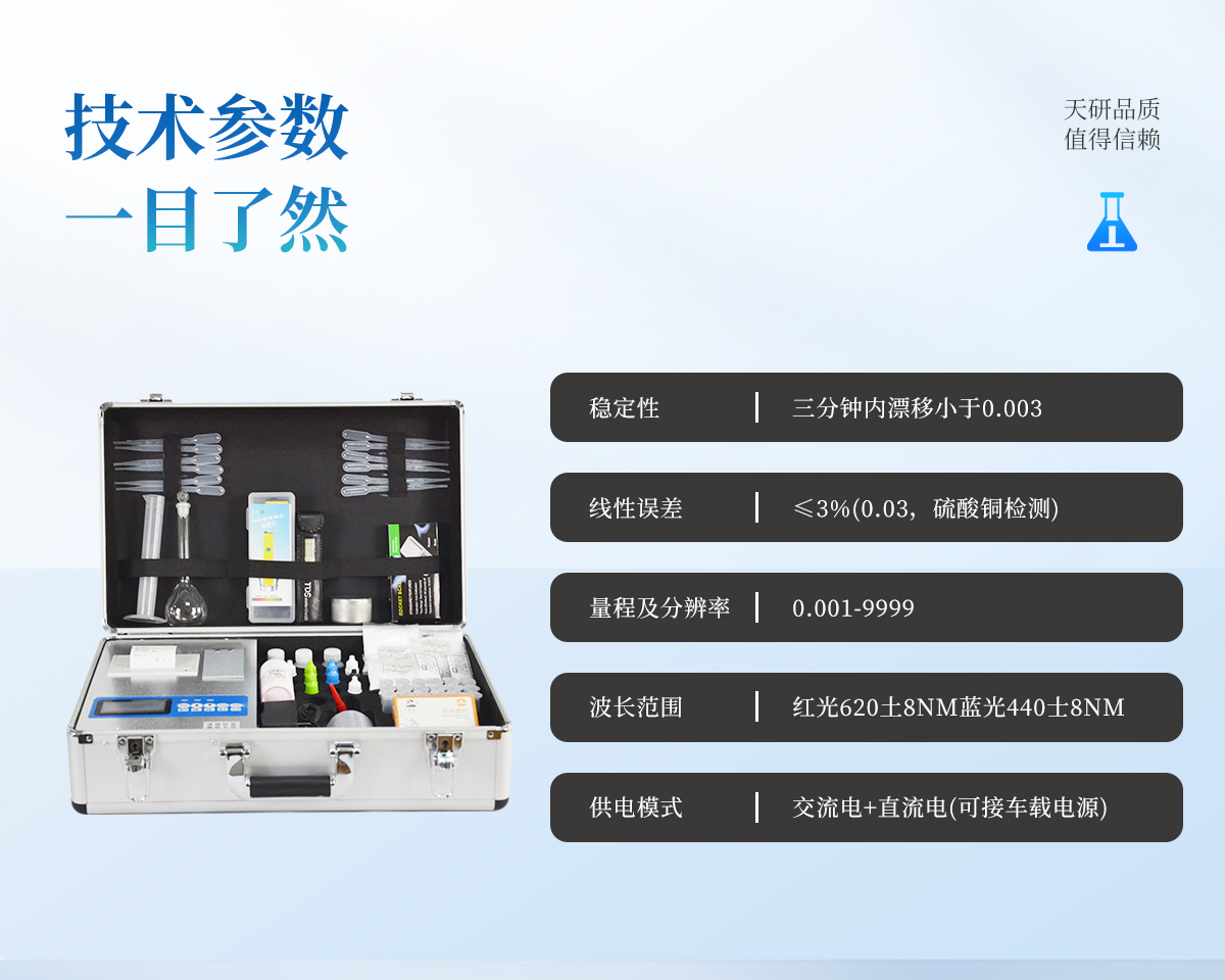 特點: 全國獨家《機箱/藥劑一體式鋁合金機箱》**設(shè)計,便于攜帶、堅固耐用,配套檢測方法及成品藥劑。 微電腦控制,數(shù)字化線路、程序化設(shè)計,液晶顯示,交直流兩用,測試數(shù)據(jù)可存儲查詢,可野外流動測試,**程度