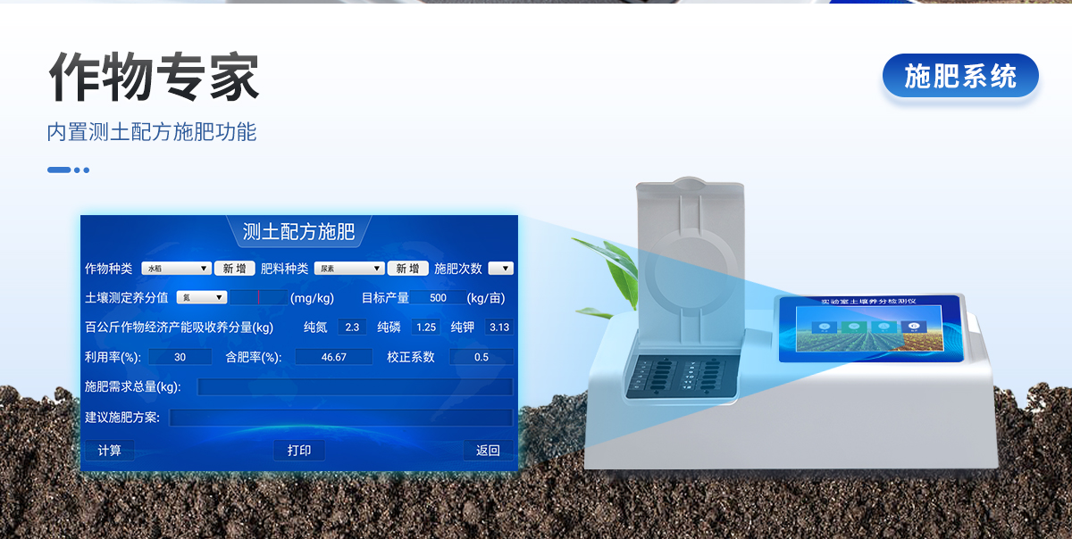 儀器用途: (新開發(fā),農(nóng)資經(jīng)銷商、農(nóng)技體系普及型)(新一代智能型,內(nèi)置測土配方施肥功能,圖譜診斷,二維碼打印,數(shù)據(jù)上傳,及測試用到的所有配件,保證用戶只需提供純凈水即可完成氮磷鉀有機(jī)質(zhì)pH含鹽量的準(zhǔn)確測定!) 產(chǎn)品簡介: 配套齊