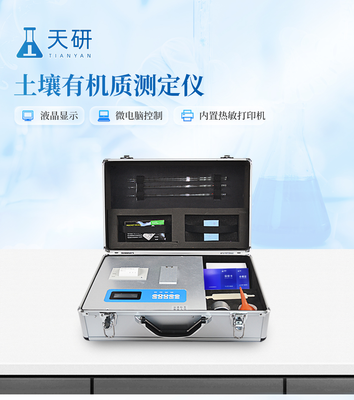 | 配套齊全:土壤有機質速測儀該儀器集藥、器、儀為一體,攜帶方便,相當于一個小型實驗室。適于農業服務部門或農資經銷商、肥料廠商測土施肥和鑒別肥料真假。 | 操作簡便、速度快捷,成品藥劑開瓶即用,無須配置。 | 性能可靠:工作穩定性優于國家標準JJG179-90指標的6倍,重復性達到光柵型分光光度計指標水平。 |
