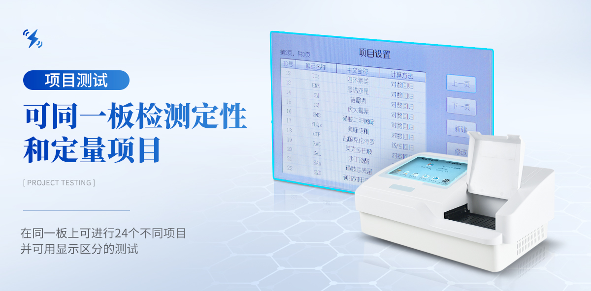 | 1. 10.4英寸彩色液晶觸摸屏輸入,大屏顯示,操作快捷。 | 2. 全屏顯示96孔可視化布板操作界面。 | 3. 自動儲存標準曲線,用戶可對標準曲線進行修正。 | 4. 內置嵌入式系統,無需外接電腦即可操作、存儲、打印。 | 5. 單波長和雙波長測試模式下均可進行自動調零。 | 6. 可選配外接PC軟件,網絡化支持,迎合數字化發展方向,可定制上傳。 | 7. 海量存在,至少可儲存100萬板(96)測試數據及500個編程項目,并支持數據備份恢復合并。 | 8. 在同一板上可進行24個不同項目并可用顯示區分的測試,并可同一板檢測定性和定量項目。 | 9. 模板功能,固定檢測工作,極大簡化操作人員工作量。 | 10. 智能計算測試結果,確保測試結果的準確有效,并可自動報警。 | 11.全新Windows彩色圖形化界面,全中文操作系統,支持鼠標、鍵盤,支持多種輸入法。 | 12. 光源智能開關,延長其壽命。 | 13. 全面完善的質控功能,包含westguard多規則質控,即刻法質控等多種質控圖及質控參數計算,具有質控報警功能。 | 14. 提供多種打印方式及多種形式中文報告,并可定制各式報告。 | 15. 布板和保存導入功能,大幅提高常用項目的測試效率。 | 16.可選擇吸光度、Cut-Off定性計算、單點定標、折線回歸、線性回歸、指數回歸、對數回歸、雙對數回歸、log-logit、冪回歸、四參數回歸、酶抑制率等計算方法。 | 17. 專用系統維護菜單,自動判斷儀器當前狀態及性能指標,并可打印相關數據。 |