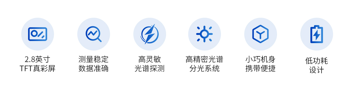 | 1.采用自主創(chuàng)新**智能監(jiān)控整個儀器的電子電路系統(tǒng)和光學(xué)系統(tǒng),確保儀器在每次測量時不受外界環(huán)境,從而達(dá)到高穩(wěn)定性(ΔE小于0.07) | 2.臺間差是指每臺儀器測量數(shù)據(jù)之間的差別。 在產(chǎn)品加工生產(chǎn)時,每臺儀器的品質(zhì)嚴(yán)格把控;在產(chǎn)品出庫時,每臺儀器的品檢嚴(yán)格把關(guān);確保每臺儀器的臺間差達(dá)到更小化,從而為儀器使用者創(chuàng)造一個可靠的數(shù)據(jù)化客商交流環(huán)境。 | 3.TY-SCL02便攜式分光測色儀具有三種供電方式:3200mAH可充電鋰電池供電;外接5V直流電源供電;鋰電池和外接5V直流電源同時供電; 鋰電池充電一次后可測量次數(shù)高達(dá)10000 次以上,此儀器設(shè)有過壓保護(hù)系統(tǒng),當(dāng)客戶接錯電源時儀器內(nèi)部的過壓系統(tǒng)就會啟動,從而保護(hù)儀器不會被燒壞。 | 4.采樣高精密的光譜分光系統(tǒng)和穩(wěn)定的光學(xué)系統(tǒng),**的分離不同的波長光波,從而得到精準(zhǔn)的光譜數(shù)據(jù)和Lab值。 | 5.TY-SCL02便攜式分光測色儀具有平均測量功能,平均測量次數(shù)可設(shè)置為1-99次。 | 6.儀器中內(nèi)置六種光源A、C、D50、D65、F2(CWF)和F12(U30)和三種顯色參數(shù)(L*a*b*、L*C*h*和Yxy),可滿足使用者的不同的顏色測量需求。 | 7.人體工學(xué)設(shè)計的機(jī)身帶給你更舒適的測量體驗。 | 8.采用2.8寸TFF彩色顯示屏、圖形化的用戶界面,為您實現(xiàn)更容易的操作。 | 9.TY-SCL02便攜式分光測色儀可與電腦端上位機(jī)軟件(選配)進(jìn)行通訊連接,利用電腦端軟件對儀器的功能進(jìn)行拓展,可實現(xiàn)數(shù)據(jù)的分析、上傳、下載、打印以及手動輸入LAB值等功能;也可與微型打印機(jī)(選配)進(jìn)行連接,可以實現(xiàn)測量數(shù)據(jù)的實時打印。 |