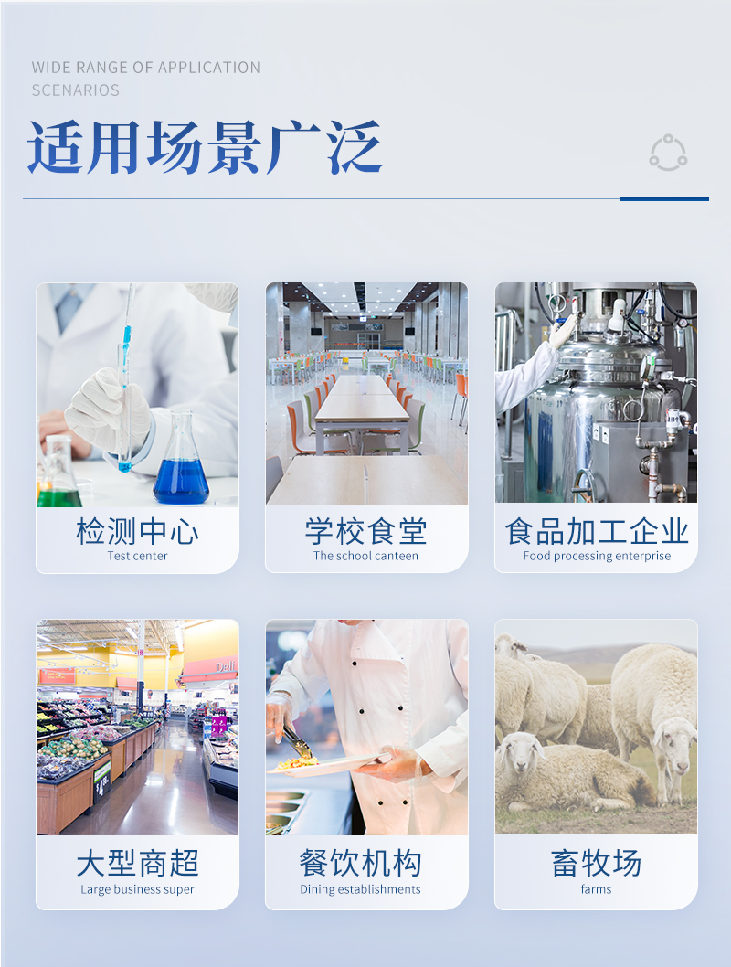 該多功能食品安全檢測(cè)儀為集成化食品安全快速檢測(cè)分析設(shè)備,廣泛應(yīng)用于市場(chǎng)監(jiān)管局、食品肉產(chǎn)品深加工企業(yè)、學(xué)校食堂、衛(wèi)生部門、畜牧部門、屠宰場(chǎng)、檢驗(yàn)檢疫部門等單位使用。