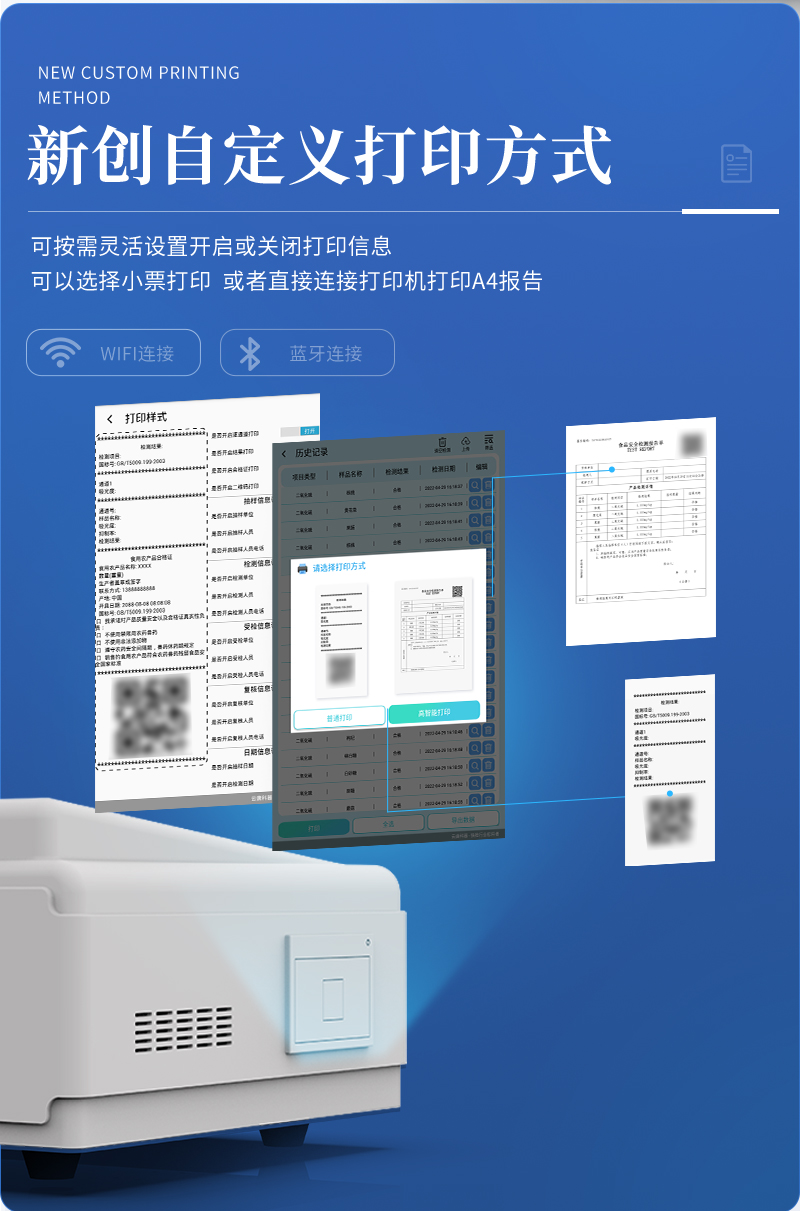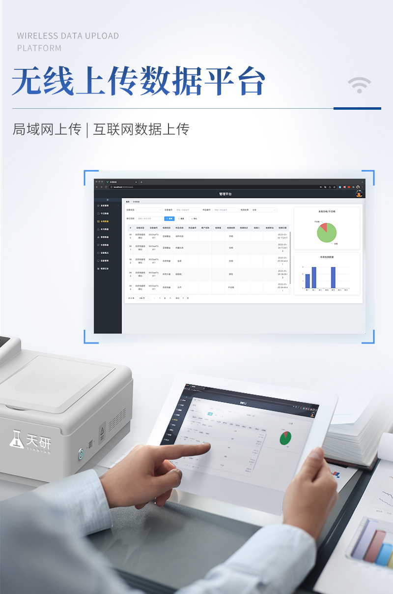 | 儀器采用臺(tái)式一體化系統(tǒng)檢測(cè)技術(shù),將分光光度模塊、新型農(nóng)殘檢測(cè)模塊、數(shù)字化管理模塊、無線通訊模塊高度集成于一體,支持檢測(cè)200種食品安全檢測(cè)項(xiàng)目,同時(shí)預(yù)留升級(jí)檢測(cè)方法。 | 儀器檢測(cè)模塊標(biāo)準(zhǔn)化、智能化,可隨意自由組合。檢測(cè)箱體內(nèi)置多個(gè)標(biāo)準(zhǔn)檢測(cè)單元,檢測(cè)模塊可以調(diào)整配置。 | 儀器采用全新安卓智能系統(tǒng),主控芯片采用 ARM Cortex-A7,RK3288/4核處理器,10.1寸高清液晶觸摸豎屏,更加**的UI交互界面,運(yùn)轉(zhuǎn)快捷;儀器配備無線通信模塊: 4G(APN)通訊模塊、Wifi模塊,藍(lán)牙傳輸,同時(shí)具有雙USB接口以及RJ45接口能以多種方式實(shí)現(xiàn)數(shù)據(jù)保存和數(shù)據(jù)傳輸功能。 | 創(chuàng)新檢測(cè)模式: | ★檢測(cè)通道:≥12通道;采用精密旋轉(zhuǎn)比色池設(shè)計(jì),使用同芯片同光源校準(zhǔn)精度,解決不同光源之間的誤差值。1-12通道間誤差0.1%。(**號(hào):ZL202022821055.2) | ★儀器具有自動(dòng)識(shí)別比色皿檢測(cè)功能,即:將樣品比色皿放入儀器后,點(diǎn)擊樣品檢測(cè),儀器自動(dòng)識(shí)別比色皿進(jìn)行通道檢測(cè)。 | 進(jìn)口高精光源: | 高精度進(jìn)口四波長(zhǎng)冷光源,通道配置 410、520、590、630nm 波長(zhǎng)光源,一個(gè)光源芯片驅(qū)動(dòng)一個(gè)光源,誤差極小,每臺(tái)設(shè)備單獨(dú)**校準(zhǔn)光源,**比對(duì),同時(shí)參照四種不同波段光源全方位覆蓋市面上99%的農(nóng)殘食品項(xiàng)目檢測(cè)。 | 智能化操作系統(tǒng): | 便捷操作系統(tǒng):設(shè)備檢測(cè)時(shí)可在同一檢測(cè)界面自動(dòng)對(duì)應(yīng)相關(guān)檢測(cè)通道一次性選擇1-12個(gè)樣品名稱,無須退出界面,節(jié)省操作時(shí)間。 | 數(shù)據(jù)集成系統(tǒng):設(shè)備首頁自動(dòng)統(tǒng)計(jì)檢測(cè)數(shù)據(jù)包含:周檢測(cè)數(shù)據(jù)、月檢測(cè)數(shù)據(jù),全部檢測(cè)總數(shù)量,均包含檢測(cè)總數(shù),合格數(shù),不合格數(shù),以及相關(guān)柱形分析圖,對(duì)各項(xiàng)檢測(cè)數(shù)據(jù)清晰掌握,無需電腦查詢,更加快捷直觀。 | 項(xiàng)目預(yù)設(shè)系統(tǒng):支持添加單個(gè)及多個(gè)相同或不相同的任務(wù)預(yù)設(shè),一鍵快速調(diào)取,每一個(gè)任務(wù)分別可以設(shè)置不同的樣品、批次、編號(hào)、來源、備注、抽樣信息、檢測(cè)信息、受檢信息、復(fù)核信息等更多信息。無縫鏈接平臺(tái)和APP實(shí)時(shí)查看下發(fā)任務(wù)。 | 數(shù)據(jù)監(jiān)管系統(tǒng):同步對(duì)接監(jiān)管平臺(tái),數(shù)據(jù)可局域網(wǎng)和互聯(lián)網(wǎng)數(shù)據(jù)上傳,檢測(cè)結(jié)果可選擇直接傳至食品安全監(jiān)管平臺(tái)。集成OSS輸出存儲(chǔ)服務(wù)、區(qū)分設(shè)備定向管理應(yīng)用,進(jìn)行區(qū)域食品安全監(jiān)管及大數(shù)據(jù)分析處理與數(shù)據(jù)統(tǒng)計(jì),檢測(cè)區(qū)域食品安全長(zhǎng)短期動(dòng)態(tài),達(dá)到食品安全問題預(yù)估、預(yù)警。 | 自定義打印系統(tǒng):內(nèi)置全新打印系統(tǒng),新創(chuàng)自定義打印方式,可按需靈活設(shè)置開啟或關(guān)閉:產(chǎn)品合格證(國(guó)家農(nóng)業(yè)部標(biāo)準(zhǔn)要求),二維碼,抽樣信息、檢測(cè)信息,受檢信息、復(fù)核信息、抽樣日期、檢測(cè)日期等信息的打印。 | 系統(tǒng)遠(yuǎn)程更新功能:可定向分客戶分儀器更新系統(tǒng),按照不同客戶后期實(shí)際需求添加項(xiàng)目,無需機(jī)器返廠,即可遠(yuǎn)程實(shí)時(shí)升級(jí)全新系統(tǒng),節(jié)省時(shí)間成本及避免運(yùn)輸造成設(shè)備損壞。 | 儀器主機(jī)采用一體化防水、抗壓、防撞擊、防腐蝕箱體設(shè)計(jì),同時(shí)配備交直流供電,可連接車載電源,可選配大容量充電鋰電池,滿足現(xiàn)場(chǎng)野外檢測(cè)需求。 | 安全證書,放心保障:儀器具有中國(guó)計(jì)量科學(xué)研究院校準(zhǔn)證書,**認(rèn)證。 |